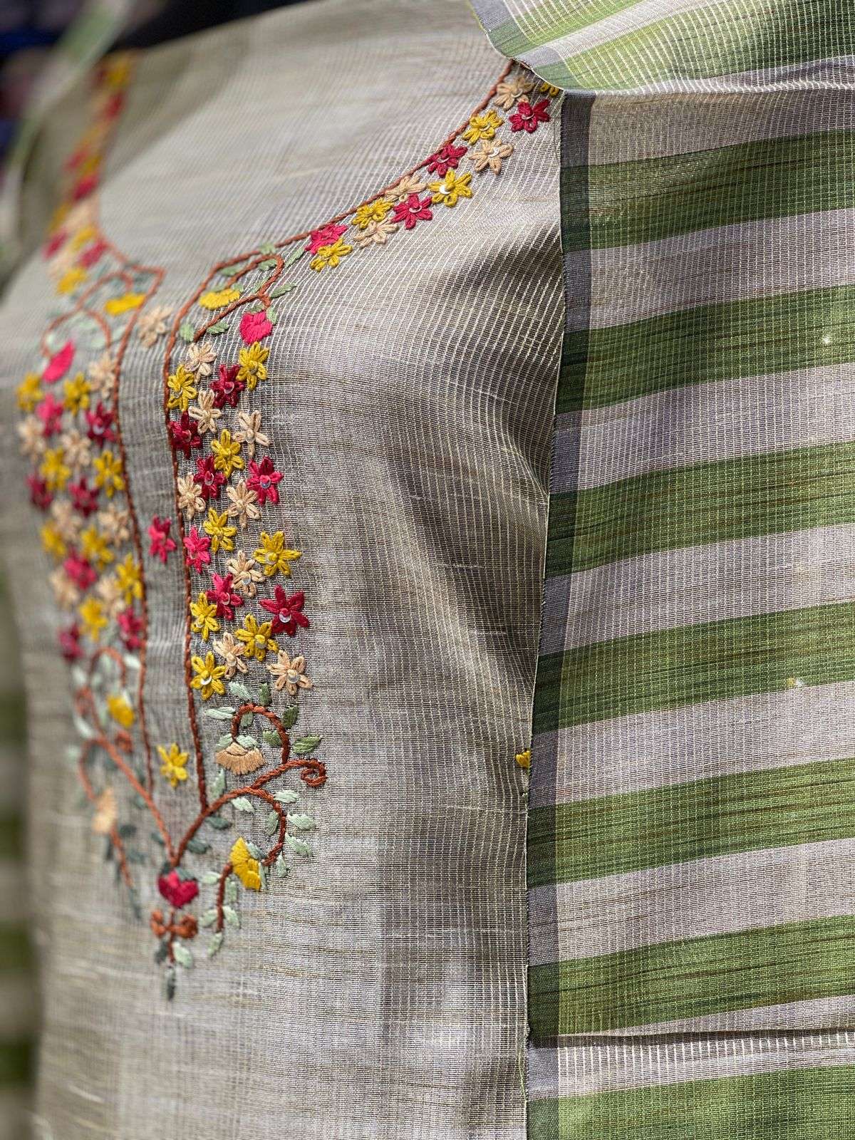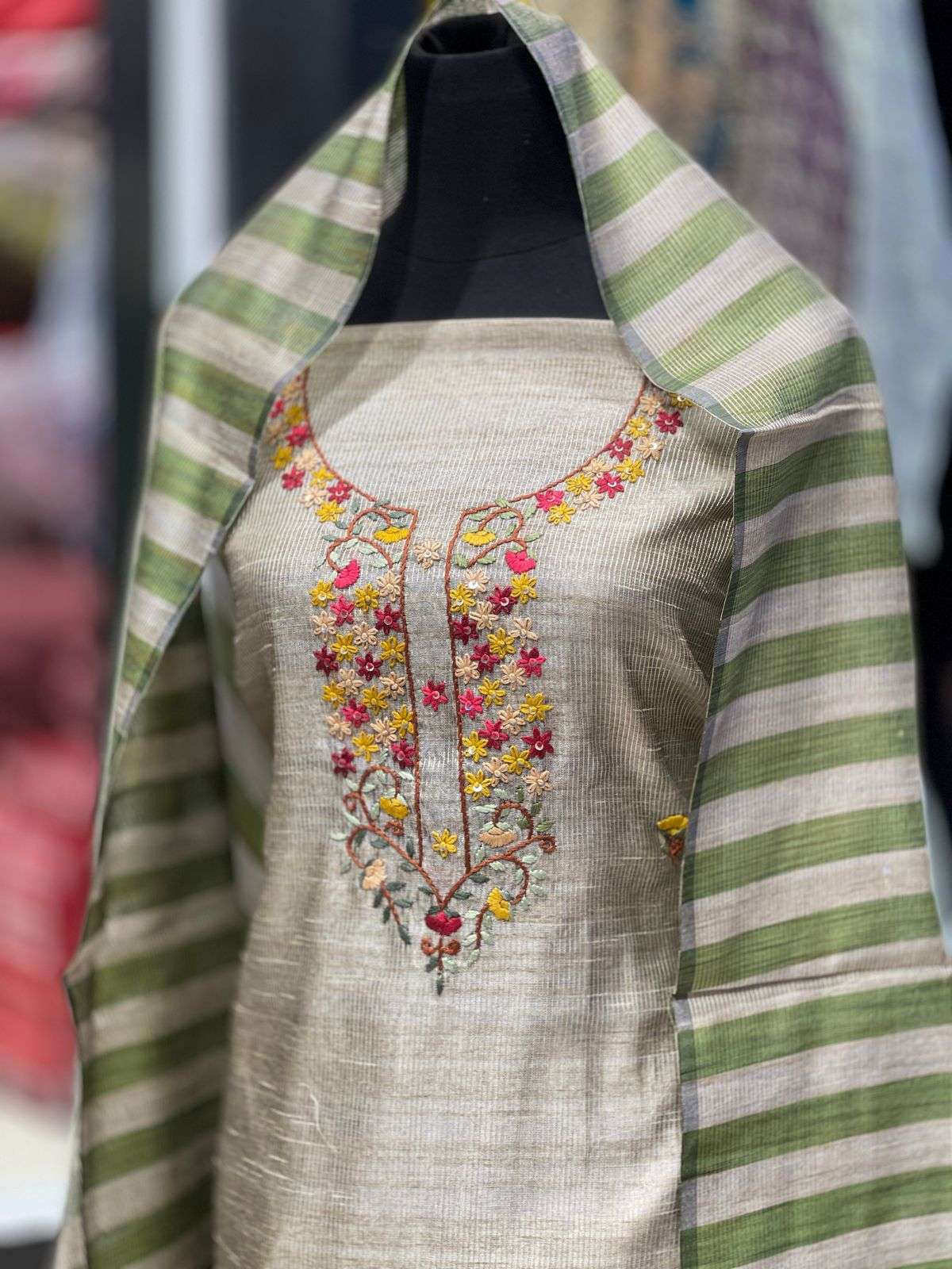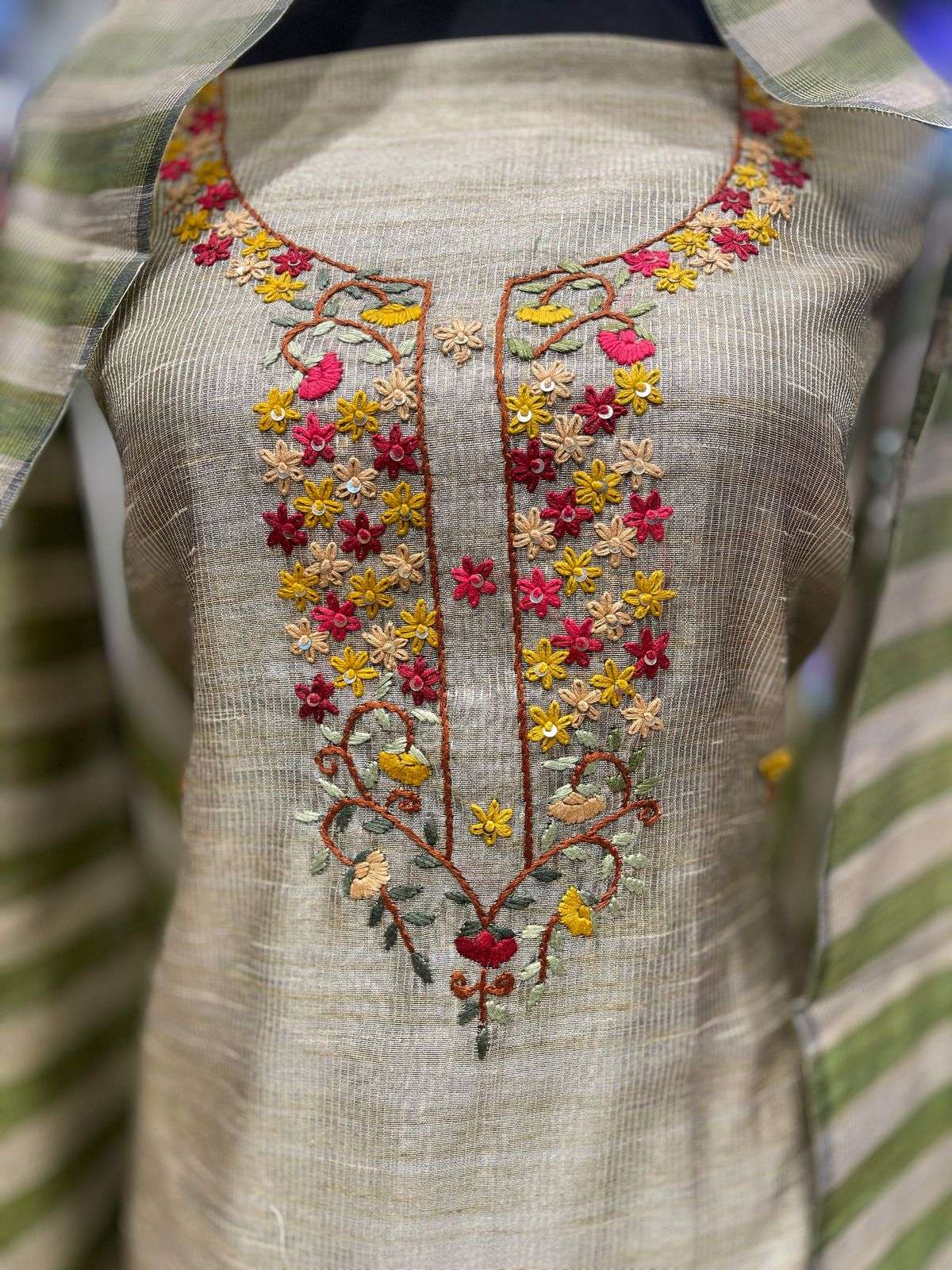 Unstitched Pure Cotton Salwar Kameez With Embroidery Work.